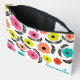 Sac accessoire personnalisé avec un motif fleuri lumineux, coloré et joli aux couleurs estivales sur un arrière - plan blanc.