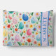 De beaux oeufs de Pâques aux couleurs pastel et des fleurs printanières sont disséminés dans un motif fantaisiste. Une bannière sur le côté a un modèle facile à utiliser pour vous de mettre votre nom sur le sac. Le design est de part et d'autre. Ce joli sac est parfait pour le maquillage ou les articles de toilette pour un voyage d'une nuit ou pourrait être utilisé comme un petit sac à main.