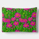 Pouch dans un motif de fleurs sauvages roses fuchsia profonds, aux centres jaunes, dans un champ d'herbe verte