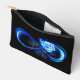 Luminous infinity symbol with glowing, beautiful, lushly blooming rose made of blue flames on black background.