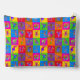 Conception de courtepointes pour enfants sur le thème de la jungle sans joints. Les caractéristiques des animaux comprennent le tigre, le léopard, l'éléphant, le rhinocéros, le perroquet, le colibri, le toucan, le singe, le lézard, le serpent, la grenouille, l'escargot, la fourrure, le papillon, le coléoptère, le centipède. Toutes les couleurs principales du spectre sont utilisées comme arrière - plans de blocs et les animaux sont des teintes arc-en-ciel fantastiques. Chaque bloc est de 9" carré. Le design se répète tous les 4 x 4 blocs.