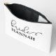 "Cet accessoire pour la mariée / l'équipe de la mariée et sa trousse de maquillage présente une police script noir élégant avec des fioritures sur un fond blanc impeccable. C'est le cadeau idéal pour votre mariée, conçu pour contenir du maquillage et de petits essentiels. Traditionnellement offert lors du dîner de répétition, ce sac de toilette sera utile pendant les premières heures avant le mariage."