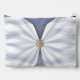 At the center, a jewel motif with a luminous gemstone design adds a touch of regal glamour and vintage charm. The dusty blue and white tones evoke luxury, creativity, and individuality, making it a stylish statement accessory for everyday use. A custom monogram at the top transforms this pouch into a unique monogrammed accessory tailored to its owner.