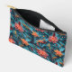 Une belle petite poche accessoire avec un motif floral en papier transparent contre un arrière - plan bleu.