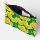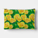 Pouchette dans un motif de roses aquarelle, dans les nuances de jaune beurre profond à jaune pâle, contre un arrière - plan de feuilles verts