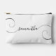 Créez votre propre sac de maquillage à coudre et à découper personnalisées ou monogramisées pour vos servantes d'accueil. Vous pouvez customiser le style et la taille du script de calligraphie manuscrite moderne girly extra-courbée, si nécessaire. Modifiez la couleur ou les couleurs de texte de l'arrière - plan pour qu'elles correspondent à votre palette de mariages.