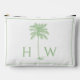 Ce sac accessoire d'inspiration côtière dispose d'un palmier classique en vert sur un arrière - plan blanc avec un monogramme que vous pouvez personnaliser avec votre choix d'initiales. L'arrière est orné d'un arrière - plan vert massif et d'un motif de palmier blanc.