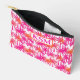 Ce sac cosmétique personnalisable est doté d'un motif de palmiers rose néon et orange.