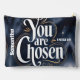 Une aquarelle d'un ciel bleu marine avec étoiles. Le texte "Vous êtes choisi" est écrit dans un style calligraphique élégant et audacieux. Il y a des accents dorés subtils et encadrent le texte et le ciel. L'arrière - plan est un paysage serein avec des montagnes et des arbres.. personnalisé avec son nom.