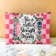 Illustration aquarelle avec bordure florale. A l'intérieur de la frontière, il y a un texte de calligraphie audacieux qui dit "Elle est habillée de force et de dignité Proverbes 31:25". Le texte est dans un style élégant. L'arrière - plan est un rose doux... personnalisé avec son nom.