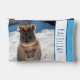 A unique accessory pouch with a photo of a very cute and happy quokka on the beach! Perfect for any boy. Customize / personalize it with your own name or the name of the person you gift it to! This will definitely brighten up your day! If you’re ever lucky enough to meet a Quokka, the happiest animal in the world, chances are you’ll break out in a grin. This popular marsupial is synonymous with Perth’s favorite holiday spot, Rottnest Island – a short ferry ride from the Western Australian port of Fremantle. In fact, it’s how the island got its name – Dutch explorer Willem de Vlamingh named it ‘Rotte Nest’ (‘rats’ nest’) in 1696, mistaking the ubiquitous small macropods (the kangaroo and wallaby family) on the beautiful Mediterranean-like island as giant rats. Of course the traditional owners of Rottnest Island, the Whadjuk Noongar people, knew of the island long before any European connection. They call it Wadjemup, which means ‘place across the water where the spirits are’. Rottnest wasn't always an island. Noongar people used to walk there during the last ice age around 6,500 years ago when lower sea levels meant it was connected to the mainland. For them it was an important place to meet and conduct ceremonies. Around 10,000 Quokkas live on Rottnest Island today. Very small populations also survive in the mainland’s south-west forests such as those near Northcliffe. Overall the species is listed as vulnerable due to predation by feral animals (cats and foxes), altered fire patterns and habitat loss.