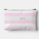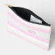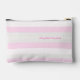 Three-color design with rhythmic stripes. Horizontal lines in three colors for your accessory pouch. Add your name or text on front and back. This variant is the pastel color scheme in grey, pink and white.