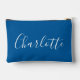 Cette pochette d'accessoires chic comporte un nom de calligraphie script moderne dans un bleu vif. Parfait pour une fête de mariée ou une fête de bachelorette, il allie élégance et simplicité pour un gardien élégant. Cette pochette personnalisée est également un cadeau réfléchi pour toute personne qui aime les designs élégants et modernes.