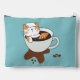 Drôle chat se relaxant avec (dans) un café, avec un croissant.