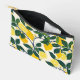 La motif est décorée dans un style animé et animé avec des citronniers luxuriants. Les branches sont ornées de citrons mûrs et jaune vif, dont certains sont tranchés à découvert pour révéler leur intérieur juteux. Les citrons sont entourés de feuilles verts qui contrastent avec l'arrière - plan de couleur crème et chaleureux. L'ensemble est audacieux et stylisé, avec des lignes épurées et un sens de la symétrie, créant une esthétique fraîche et joyeuse qui évoque une ambiance méditerranéenne.