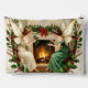 Fairies busy with Christmas decoration around a fireplace fire with decorative Xmas wreath circle design.
