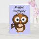 Le hibou adorable de bande dessinée jouant la carte d'anniversaire de clarinette indique le joyeux anniversaire extérieur et intérieur indique que peu de birdie d'A m'a indiqué. Ayez un jour splendide. Manière originale de grand amusement de partager des souhaits d'anniversaire.