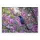 Magnifique pantalon bleu et noir perché sur une branche au milieu de belles fleurs de pomme de crabe rose en pleine floraison. Un beau cadeau pour vous-même ou pour quelqu'un de spécial!