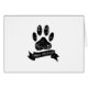 Empreinte de patte de chien en détresse avec ruban noir. Le meilleur ami de l'homme. Image en noir et blanc.