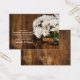 Pratiquez un peu de gentillesse mariage et redonnez votre grand jour lorsque vous organisez une carte de don mariage dans le cadre de vos invités. La charmante carte Charity Favor Mariage campagnard en bois et marguerites blanches indique qu'au lieu d'une faveur traditionnelle du parti, un don a été fait en leur nom à l'organisme de bienfaisance. Customisez-le avec le nom de l'organisme de bienfaisance favori et le nom personnel de la mariée et du marié. Ce mariage rustique chic personnalisé décontracté mais classe à thème ranch occidental faveurs dispose d'une photo originale numériquement fleurie améliorée d'un seau en bois rempli de fleurs de marguerite blanche et d'un arrière - plan de grange brun patiné.