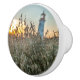poignée de porte d'un phare dans un champs au coucher de soleil. Titre: « L'ance à la cabane 2 », Îles-de-la-Madeleine, Québec, Canada, Marie-Ève LaBadie