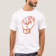 poing orange, sur le T-shirt orange