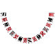 Ce joli drapeau d'étamine est parfait pour des fêtes d'anniversaire, des douches, des fêtes d'anniversaire et n'importe quelle autre célébration. Trois motifs sont montrés ; un avec le pois rouge et blanc et deux autres avec différentes versions des rayures noires et blanches. Vous customisez le lettrage.