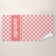 Un mignon motif à pois rose et blanc orne l'ensemble de serviettes de bain. Pour personnaliser la couleur du cadeau d'anniversaire, modifiez la couleur de remplissage et le nom. En outre, changez le nom en initiales, changez la police, la couleur de police ou la taille de police. N'oubliez pas d'ajuster également la couleur de forme. Pour obtenir de l'aide sur la personnalisation de la couleur et du design, contactez https://t.me/KBMD3signs_chat.