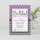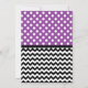 Jolie et élégante invitation à la douche nuptiale avec des pois blancs sur le dessus violet et un motif en zigzag noir et blanc sur la moitié inférieure. Personnalisez-vous avec les détails de la douche du futur marié et choisissez votre type de papier aussi!