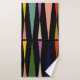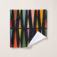 Ce kit de serviettes a un design moderne du milieu du siècle de triangles faisant face l'un à l'autre et répétant à travers le design.
