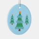 Un joli tableau pointillisme d'un sapin de Noël orné de boules colorées, grande guirlande bleue, surmontée d'une étoile orange et jaune, est imprimé trois fois sur des ornements personnalisés. L'arrière - plan est bleu pâle et cette couleur peut être customisée pour accompagner votre décoration. Le dessin est imprimé sur les deux côtés. Merci pour faire du shopping à CherylsArt sur Zazzle.