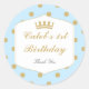 Bleu & Gold Dots Stickers Royal Crown Prince Party. Customisez avec tout texte. Éléments correspondants disponibles.