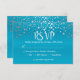 Carte RSVP de mariage. Doté d'un mariage moderne style rsvp dans un arrière - plan bleu turquoise avec des points de confetti argent et le mot amour en caractères gras. 100% Personnalisable. Prêt à remplir dans la ou les cases ou Cliquez sur le bouton PERSONNALISER pour ajouter, déplacer, supprimer, redimensionner ou modifier une police ou un graphique. Fabriqué avec un vecteur haute résolution et/ou des graphiques numériques pour une impression professionnelle. REMARQUE : (IL S'AGIT D'UNE IMPRESSION. Tous les modèles de produit zazzle sont des "impressions" sauf indication contraire dans la zone "A propos de ce produit") Le design sera imprimé EXACTEMENT comme vous le voyez à l'écran et sur le produit...alors assurez-vous que lorsque vous effectuez vos modifications sur le redimensionnement de n'importe quel graphique ou texte qu'il convient dans les zones correctement et que votre orthographe et libellé est comme vous voulez qu'il soit en taille, couleur et police. Merci pour le support et l'arrêt par mon magasin - LetsUDesignIt