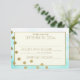 Carte de réponse mariage Festive et moderne aqua bleu base d'aquarelle pour compléter l'invitation encadrée en or et accentuée avec des points de confetti d'or imprimé design formel faire-part de mariage.