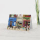 Greyhound, Whippet, Italian Greyhound, Silken Windhound silhouettes contre façades colorées des magasins. Texte relatif à la peau et au chien.