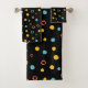 Des cercles colorés dessinés à la main et des points de motif sans couture sur un arrière - plan noir au dos.