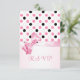 Carte de réponse plate élégante et raffinée à points noirs, roses et blancs avec effet ruban. Vous pouvez l'utiliser pour n'importe quelle occasion, facile à personnaliser - changer la police, la couleur, la taille et ajouter votre propre texte. Veuillez noter : le ruban est une image imprimée, pas réelle.