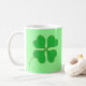 Peinture d'un shamrock vert vif, trèfle à quatre feuilles, taillé en points dorés, imprimé sur des tasses. Peut sélectionner votre propre couleur arrière - plan. Pour modifier la couleur de l'arrière - plan, cliquez sur Customiser, puis sur Modifier, puis sur Arrière - plan, puis sur la couleur de votre choix.