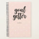 Ce planificateur élégant est doté d'un arrière - plan rose vif à la mode avec des pois blancs, et de l'expression "but getter" dans la typographie moderne. Personnalisez avec votre nom.