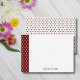 Faites votre marque dans le style avec ces cartes à notes personnalisées aux points rouges foncés - le mélange parfait du charme classique et du design contemporain. Dotés d'un motif de pois ludique en rouge vif et de votre nom ou monogramme personnalisé, ces cartes de notes apportent une pop de personnalité à chaque message. Que vous envoyiez un remerciement sincère, un bonjour gai ou un cadeau réfléchi, ces cartes personnalisées sont un moyen élégant de rester connecté. La conception de points rouges ajoute juste la bonne quantité de plaisir tout en gardant les choses polies et professionnels. Cette carte de note est considérée comme appropriée ou idéale pour les cartes de notes personnelles et professionnelles comme suit : *Correspondance quotidienne **Cadeaux d'enseignant ou d'hôtesse **Amateurs de papeterie personnalisée Merci de visiter notre boutique!