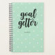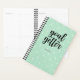 Ce planificateur élégant dispose d'un arrière - plan vert menthe tendance avec des pois blancs, et l'expression "but getter" dans la typographie moderne. Personnalisez avec votre nom.