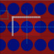 Pois bleu audacieux sur le tissu géométrique rouge
