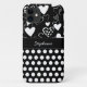 Le coque iPhone 5 motif pois branché est doté de pois blancs et de coeurs blancs de style différent sur un arrière - plan noir et d'un cadre de bordure avec un accent noir pour votre nom, votre texte initial ou autre texte. Montrez votre personnalité avec ce coque iPhone 5 à la mode et unique. Fait un grand cadeau pour toutes les occasions. Cliquez sur "Customiser!" pour modifier la taille du texte, la couleur du texte, le style de police et plus encore!