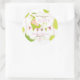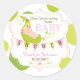 Le bébé de sommeil mignon dans une cosse de pois avec la bannière d'étamine de baby shower et un arrière - plan à pois vert vous remercient étiquette d'autocollant.