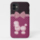 Cute iPhone 5 coque fait en rose et noir, avec un arrière - plan à deux tonalités polka point. Les graphiques d'un joli ruban et d'un arc en pois rose et noir de polka s'étendent au milieu et un mignon caniche rose pâle orne le fond, du coque. Customisez d'ajouter le texte que vous voulez. Un coque doué qui fait une belle idée cadeau.