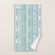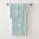 Cette serviette de bain dispose d'une motif moderne de pois et rayures merveilleuses en verre de mer et bleu.
