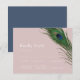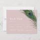Un ensemble minimal mais magnifique de cartes de réponse de RSVP de mariage présentant une élégante plume de paon au-dessus de vos informations et détails de mariage.