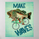 Poisson basse à grande bouche à vélo sur une affiche verte qui dit "Make Waves"