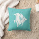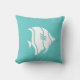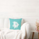 élément de décoration sur le thème de l'océan poisson blanc sur un oreiller bleu sarcelle d'un côté et rayure sarcelle et blanche au dos.