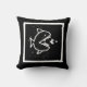 partie de la décoration sur le thème de l'océan POISSON blanc MANGEANT POISSON sur un coussin noir sur un côté et bandes blanches de POISSON sur le dos.